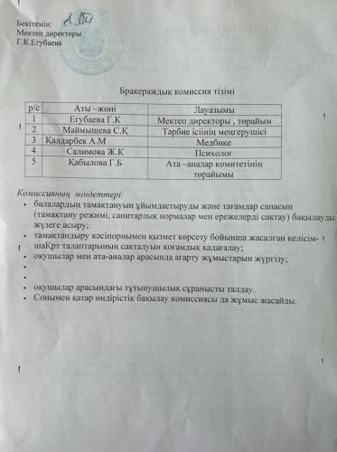 2022-2023 оқу жылына арналған бракераждық комиссия тізімі