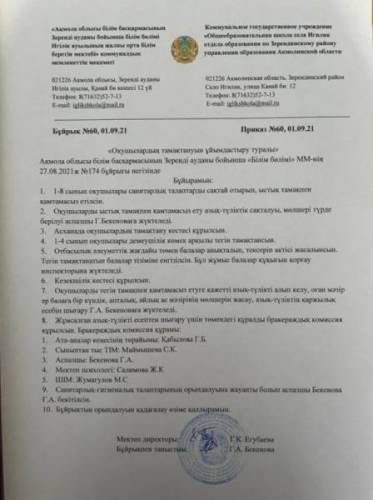 "Оқушылардың тамақтануын ұйымдастыру туралы" мектеп бұйрығы