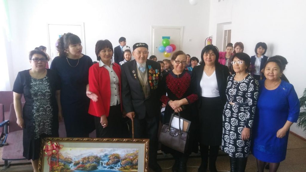 білдірді. Мектеп ұжымы қазақтың дәстүрі бойынша қадірменді ақсақалдың иығына шапан жауып, сый-сияпат жасады. Естелікке оқушылармен, ұстаздармен суретке түстік. Ұстаздар ұжымынан бастап, бастауыш сынып оқушыларына дейін өз үлестерін қосып, атамыздың ақ батасын алды.